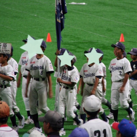 福岡県の小学生でソフトボールチームに入っていて、大会に出る子供達が、いつもプロ野球が行われているヤフオクドームに集まりました。
