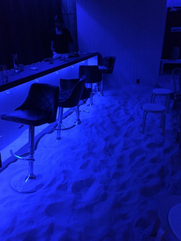 まだオープンしたばかりのバーで、さらさらの砂が店の床全体に