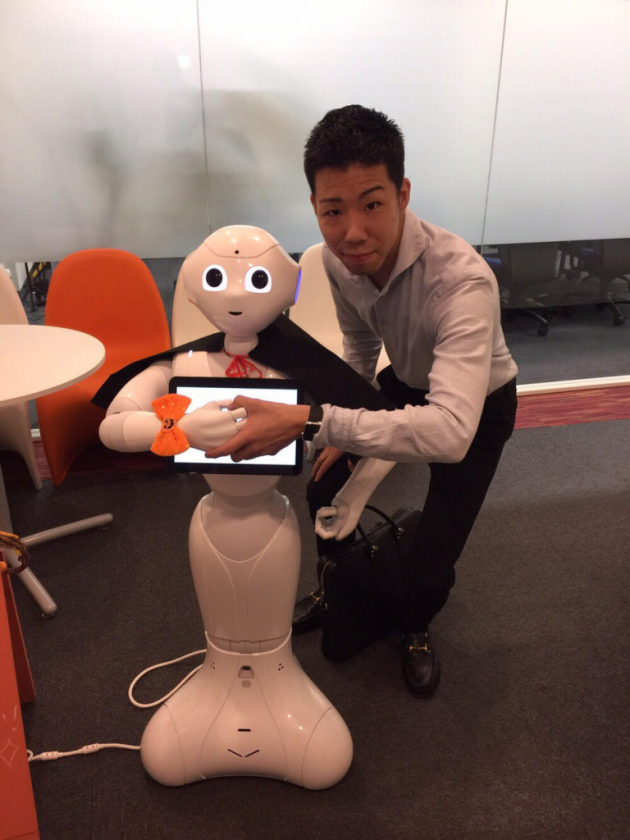 本社のペッパー社員と仲良しの木戸社員!