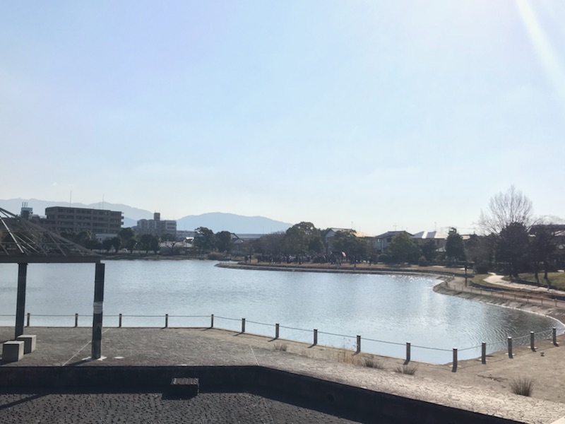 毎年、池のある大きな公園でマラソンを行ないます。